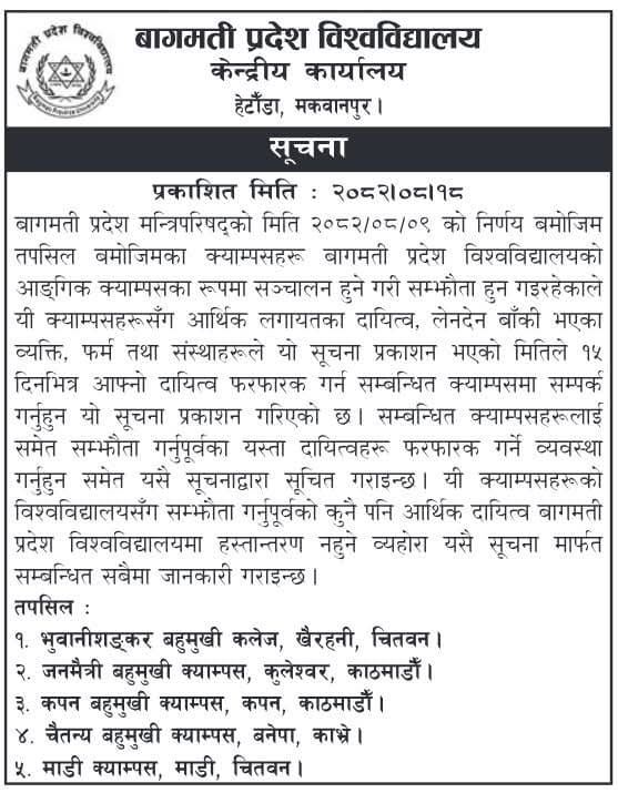 Bagmati University aims to advance learning, share knowledge and foster the skills that young men and women need to succeed as people and professionals in all spheres of life. Advance scientific research globally and meet the community’s needs by participating in sustainable economic, technical and human development.